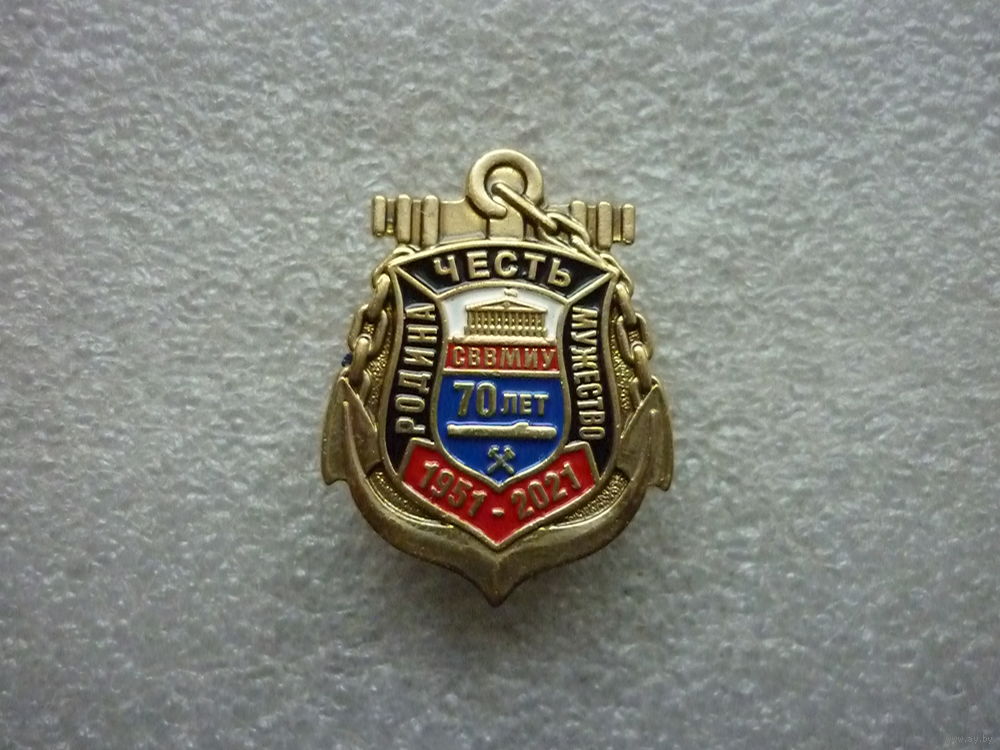 Знак юбилейный. Севастопольское высшее военно-морское инженерное училище (СВВМИУ) 70 лет. 1951-2021. Винт латунь.