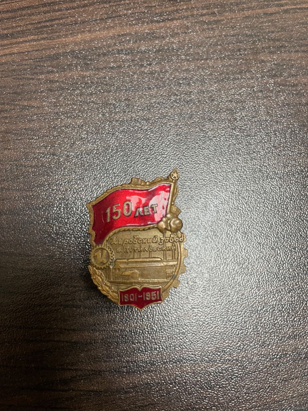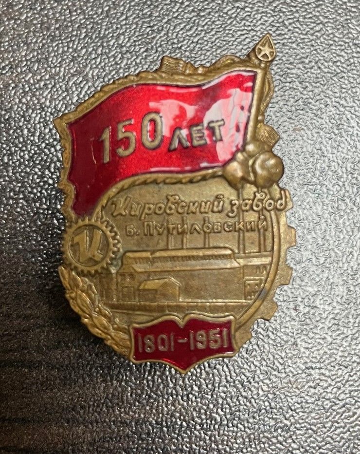 Знак ЗНАЧОК. 150 ЛЕТ КИРОВСКОМУ ЗАВОДУ. БЫВШИЙ ПУТИЛОВСКИЙ. 1801-1951. ЛЕНИНГРАД. КРАСНОЕ ЗНАМЯ