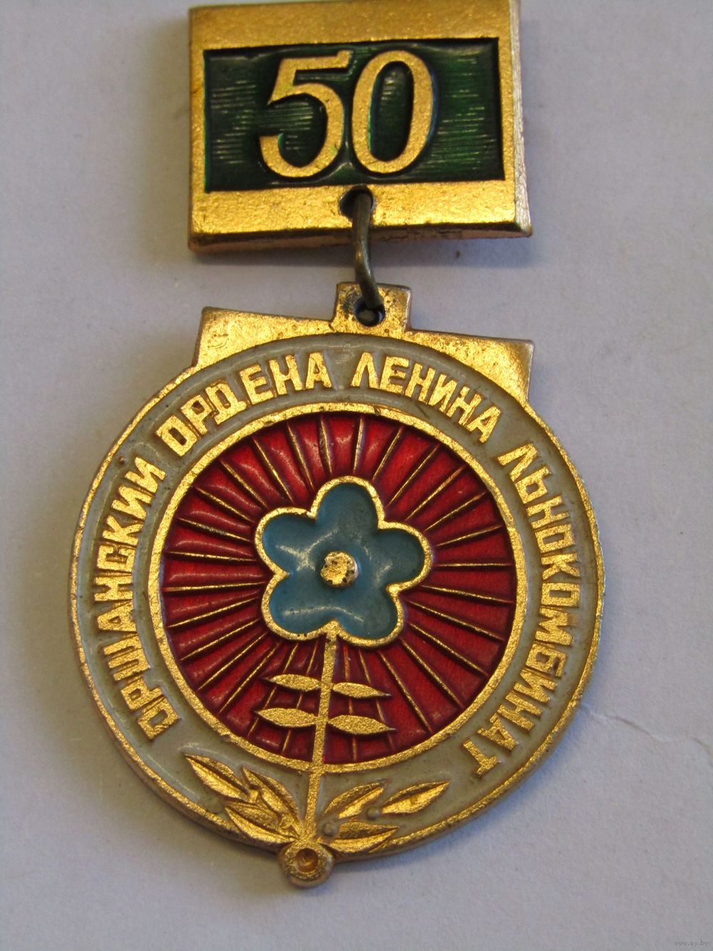 Знак. Значок. "50 лет". "Оршанский льнокомбинат". СССР. м