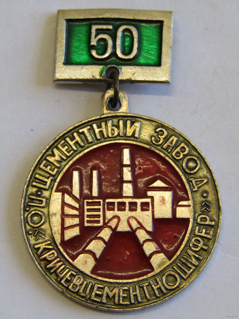 Знак. Значок. "50 лет". "ПО Кричевцементношифер". Кричев. Производственное объединение". "Завод цементный". СССР. м
