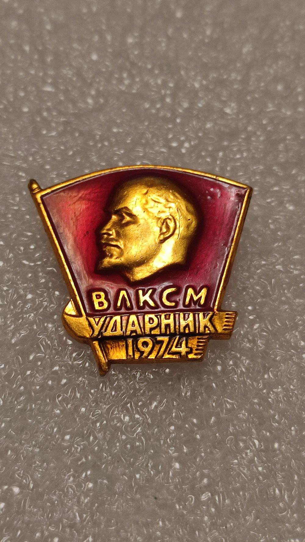 Знак значок Ударник ВЛКСМ 1974,200 лотов с 1 рубля!!!