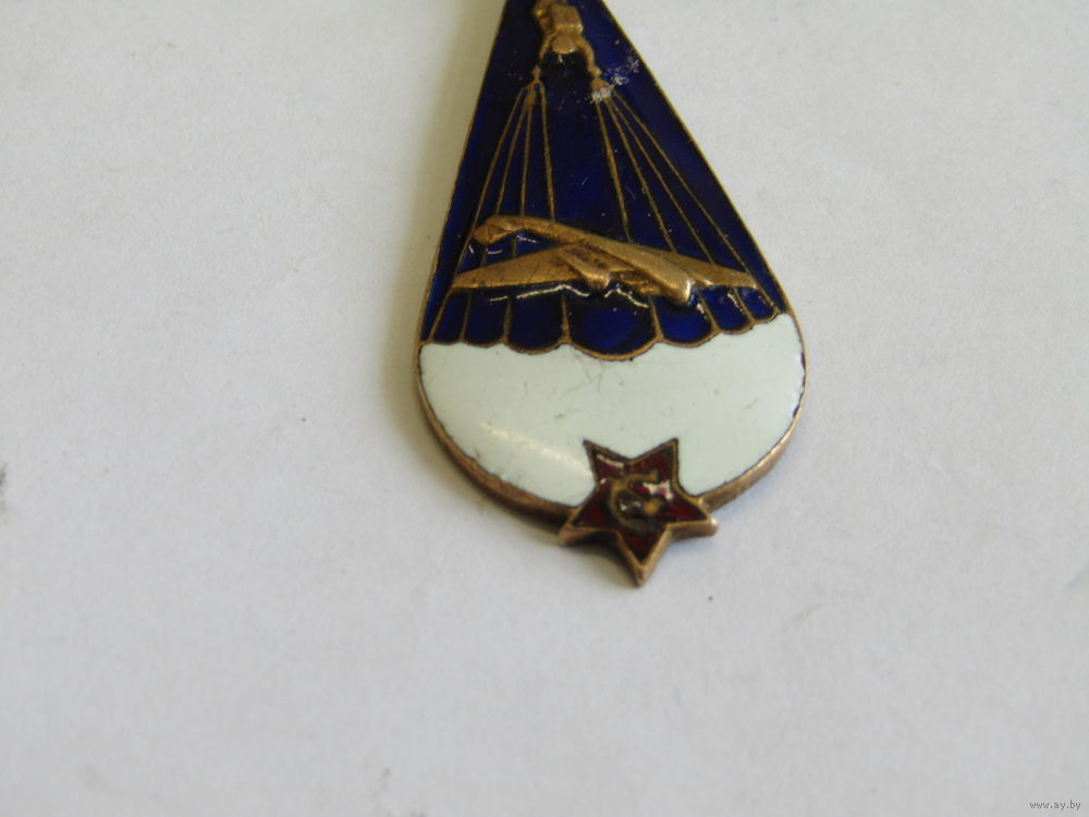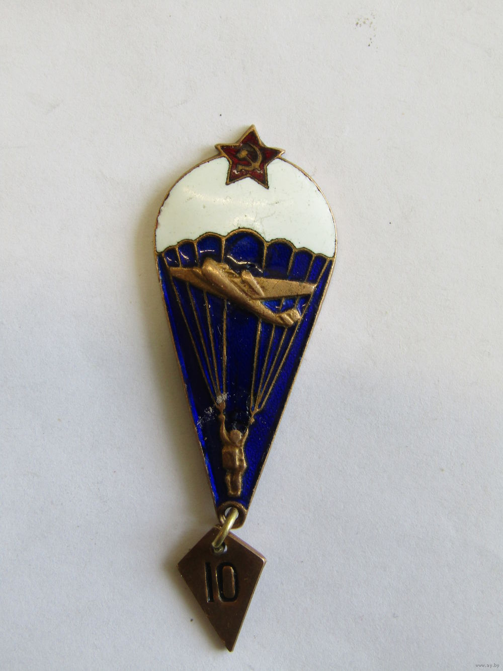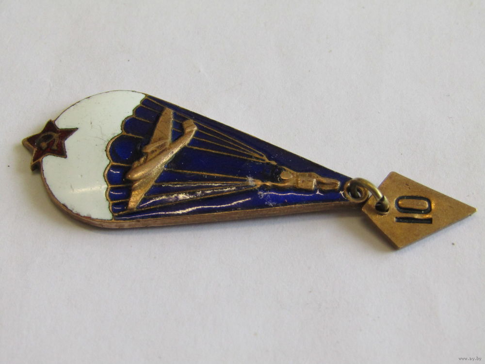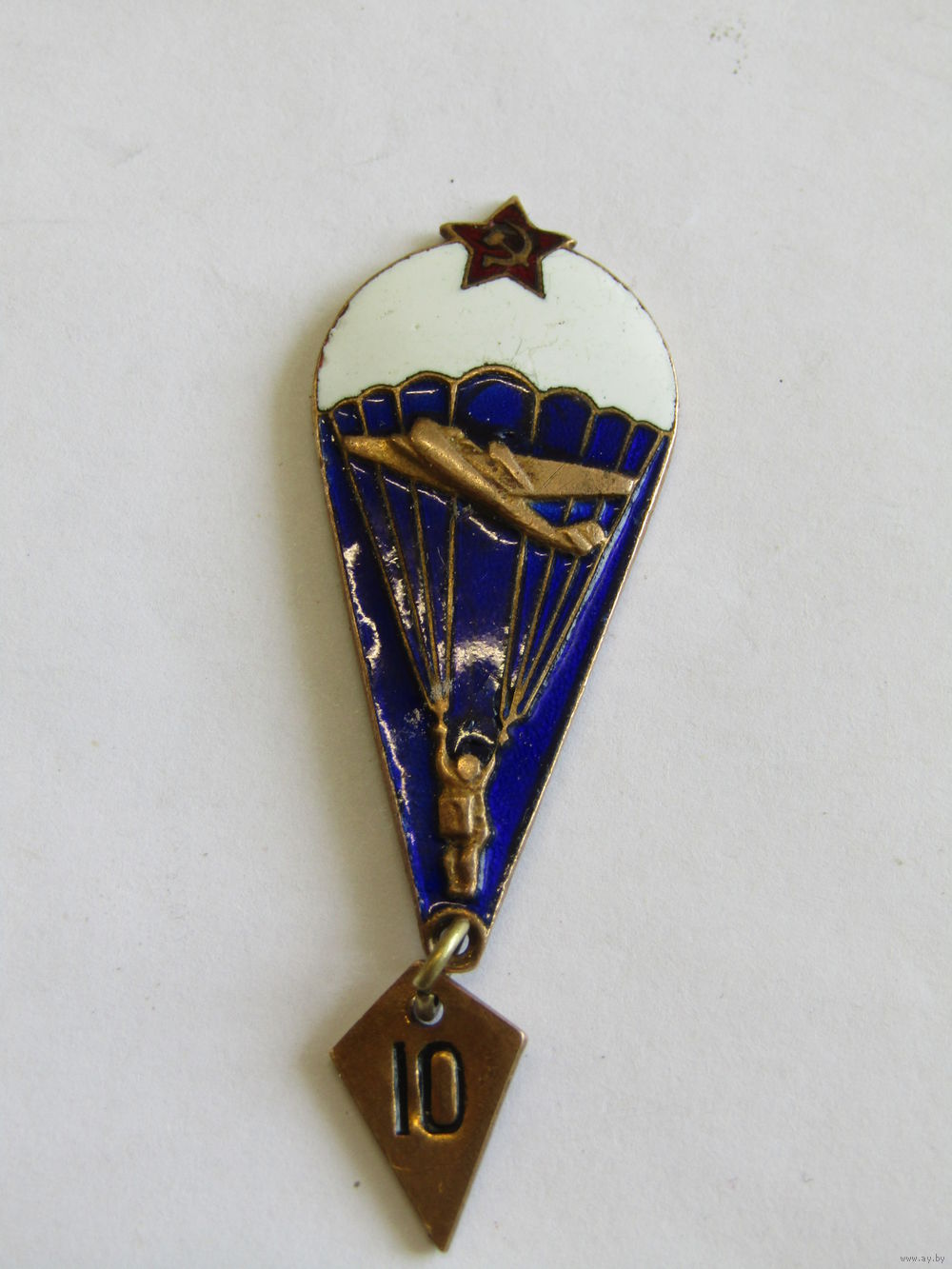 Знак. Значок. "За прыжки с парашютом". 10-15 прыжков. "Тошнотик". "Парашютист". Оригинал. СССР. м