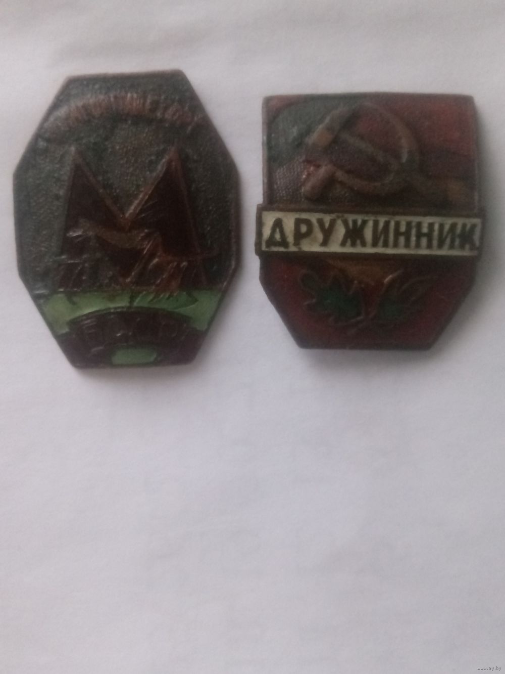 Знаки мингорпищеторг и дружинник.