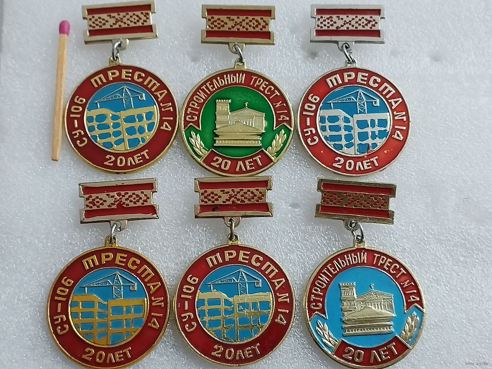 Знаки. Строительное трест N 14, 20 лет. г. Гомель. по разновидностям