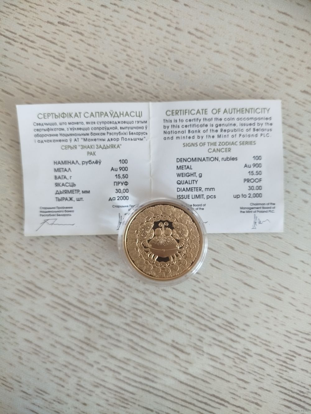 Знаки зодиака. 2011год. Рак. Золото.футляр в подарок. Торг по звонку