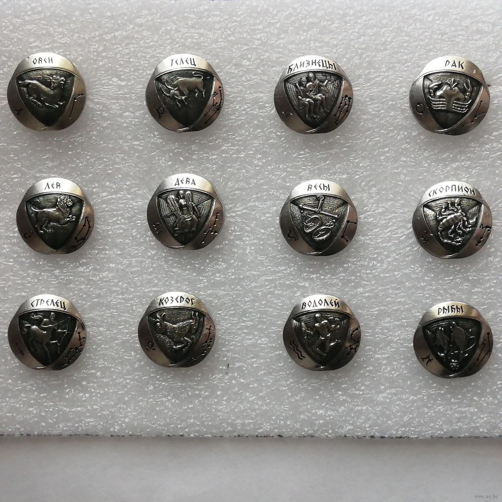 | 12 значков из серии Знаки зодиака. Значки в хорошем состоянии. | |