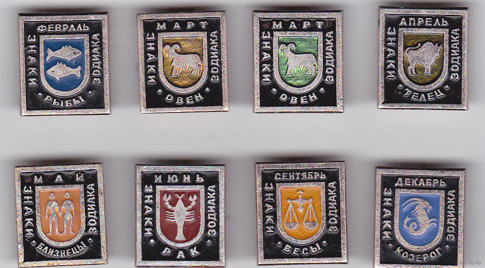 Знаки Зодиака: Рыбы, Овен, Телец, Близнецы, Рак, Весы, Козерог.