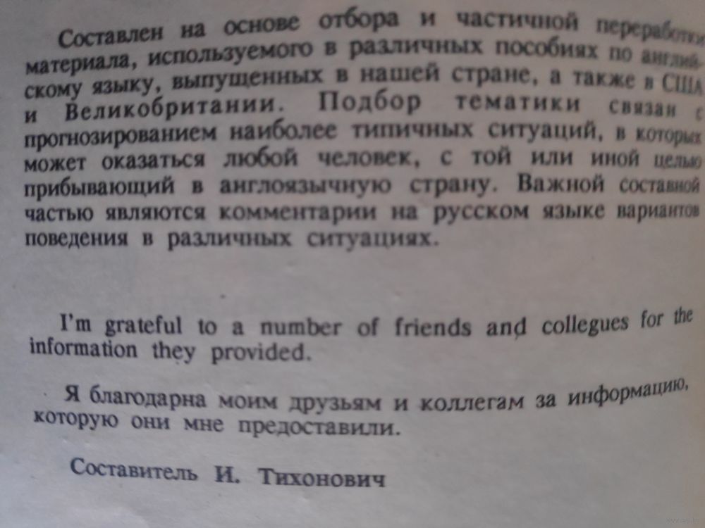 Составлен на основе отбора и частичной переработки материала, используемого в различных пособиях по английскому языку, выпущенных в нашей стране, а также в США и Великобритании. Подбор тематики связан с прогнозированием наиболее типичных ситуаций, в которых может оказаться любой человек, с той или иной целью прибывающий в англоязычную страну. Важной составной частью являются комментарии на русском языке вариантов поведения в различных ситуациях.