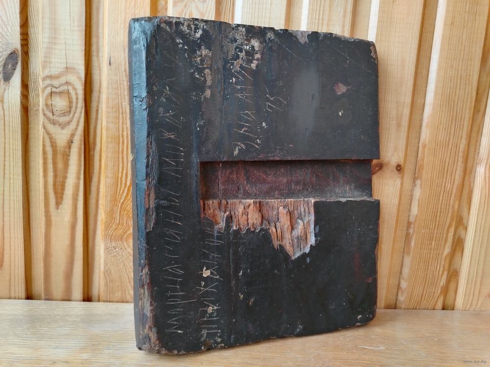 Мною же была проведена обработка от жука, заделка отверстий реставрационным воском, укрепление-склейка-заделка трещины доски.
