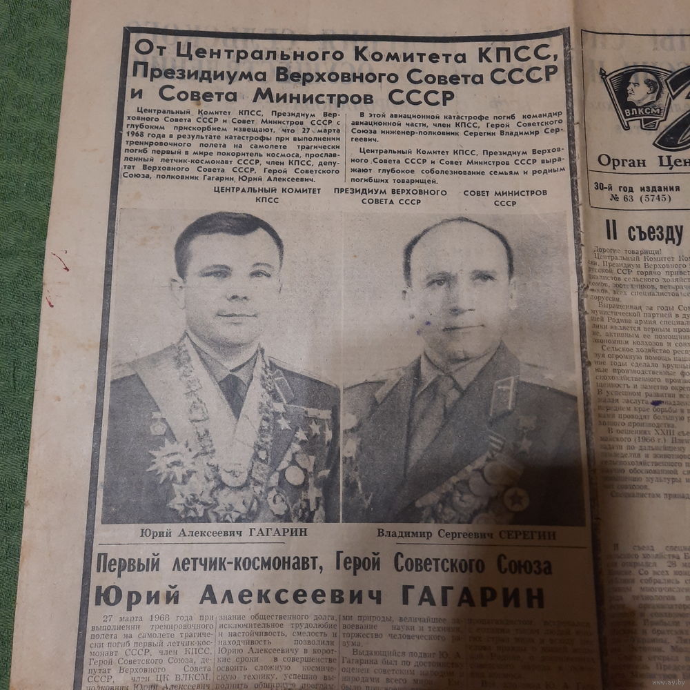 Знамя Юности, номер 63 1968г. Извещение о гибели Юрия Гагарина и Владимира Серёгина.