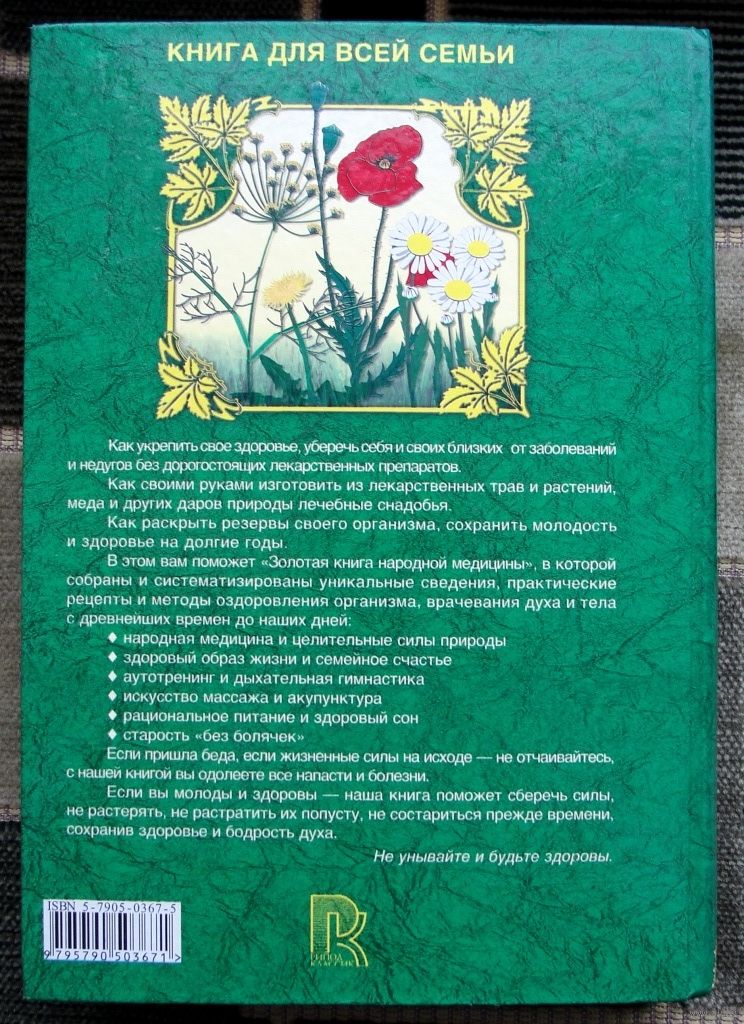 Это уникальное по составу энциклопедическое издание рассчитано на читателей всех возрастов. Опыт врачевания духа и тела с древнейших времен до наших дней, накопленный человечеством и обобщенный медиками и учеными в последние годы, дает возможность любому человеку выбрать для себя соответствующие методы и средства самостоятельного лечения и закаливания. Исцеление словом, народная медицина, водолечение и другие природные факторы, здоровый образ жизни, активное долголетие, аутотренинг, дыхательная и гигиеническая гимнастика, искусство массажа и акупунктура, физкультура и спорт, многочисленные тесты и советы специалистов по саморегуляции психического состояния - вот далеко не полный перечень, позволяющий победить и болезни века, и не очень распространенные заболевания. Подробны алфавитный указатель заболеваний позволяет быстро найти способы избавления от своего недуга. В условиях, когда лекарства очень дорогие, эта настольная книга поможет Вам не только сохранить, но и укрепить свое здоровье.