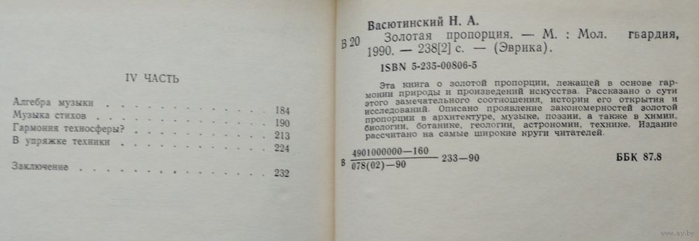 240 стр. Эта книга о золотой пропорции, лежащей в основе гармонии природы и произведений искусства. Рассказано о сути этого замечательного соотношения, истории его открытия и исследований. Описано проявление закономерностей золотой пропорции в архитектуре, музыке, поэзии, а также в химии, биологии, ботанике, геологии, астрономии, технике. Издание рассчитано на самые широкие круги читателей.