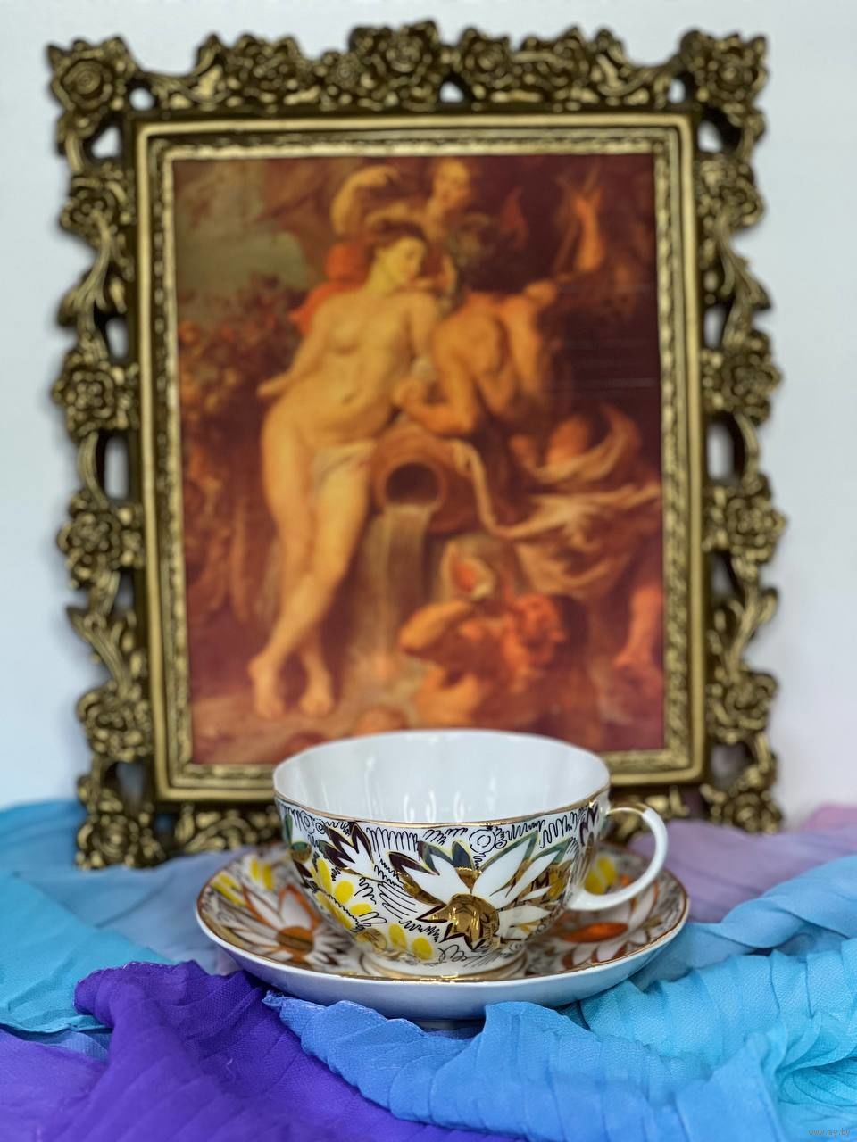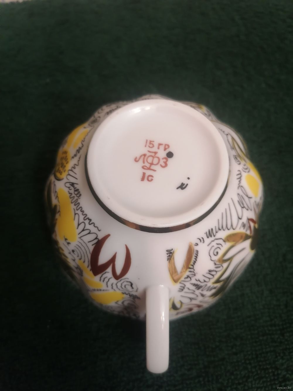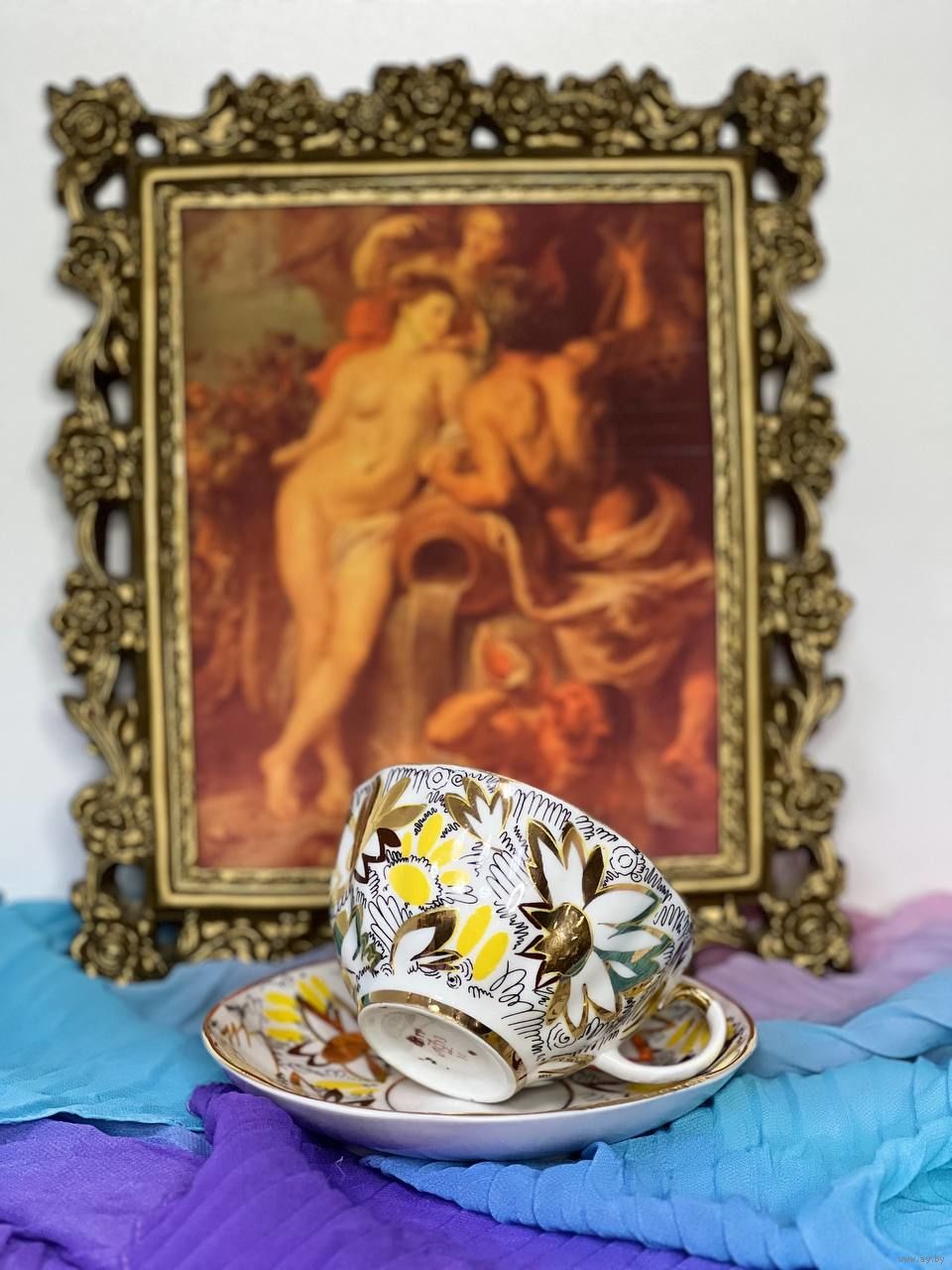 Чайная пара из сервиза Золотая ромашка. Все целое без сколов и трещин. Есть незначительные потёртости позолоты.