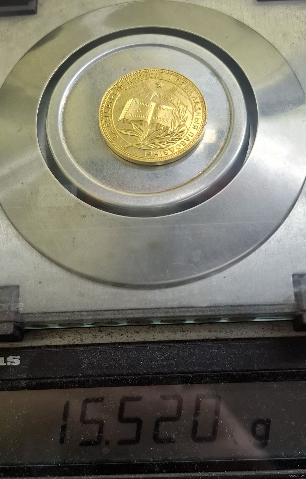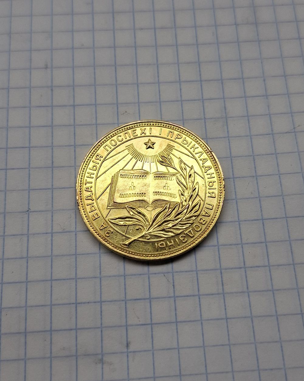 ЗОЛОТАЯ ШКОЛЬНАЯ МЕДАЛЬ БССР 375 ПРОБА, ВЕС 15.5 ГР. ДИАМЕТР 32 ММ