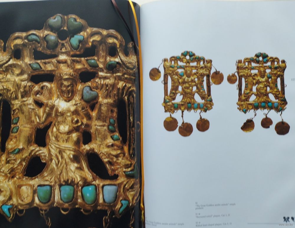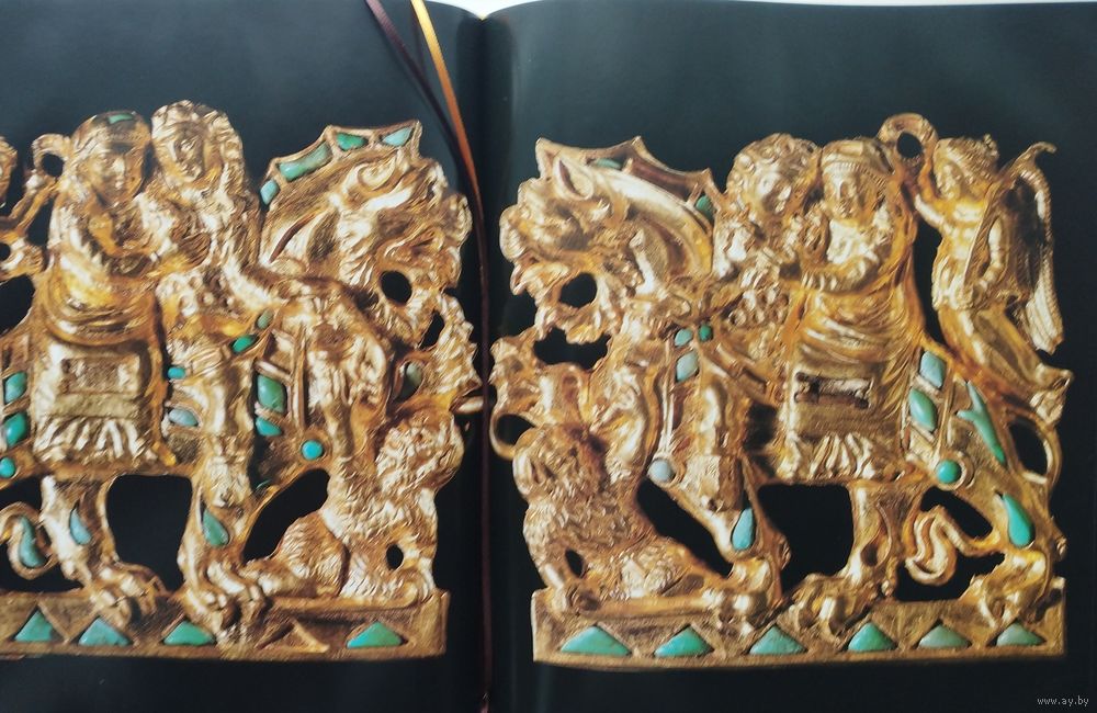 Отпечатано в Австрии. Большой энциклопедический формат. Мелованный альбом. Ляссе. Тираж 2000 экз. 248 стр. Альбом на англ. яз. Доктор исторических наук Виктор Сарианиди в своей книге рассказывает о раскопках, проводимых афганской экспедицией вблизи города Шибарган в Северном Афганистане в 1978 - 1979гг., где было найдено около 20000 золотых предметов: посуда, украшения, одежда и др.