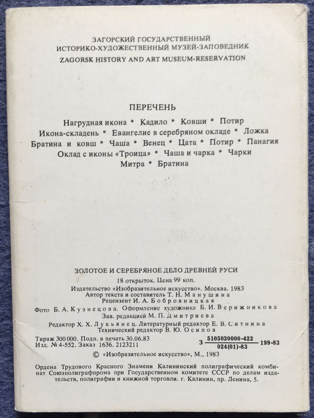 18 открыток с описание предметов на обратной стороне.