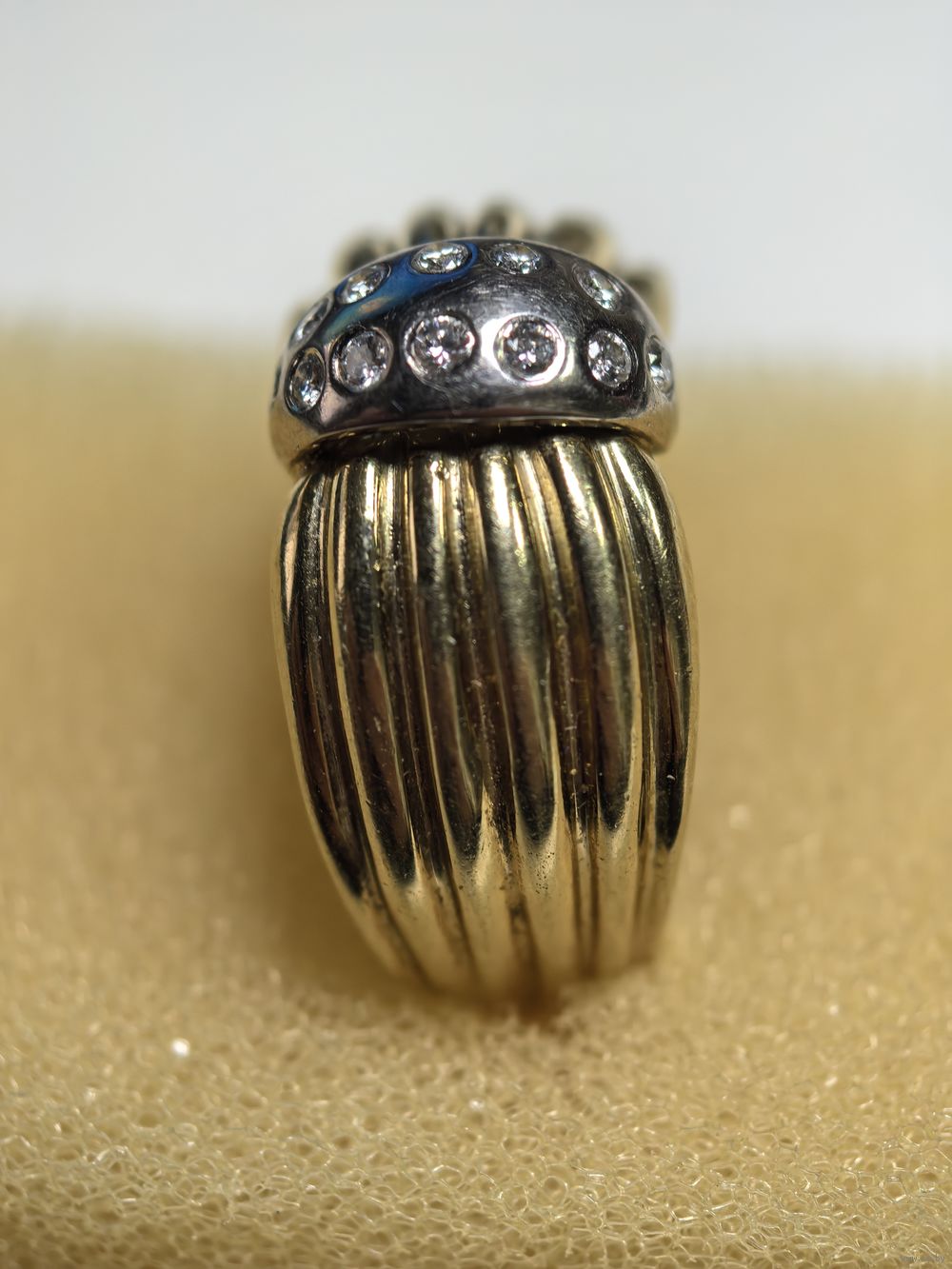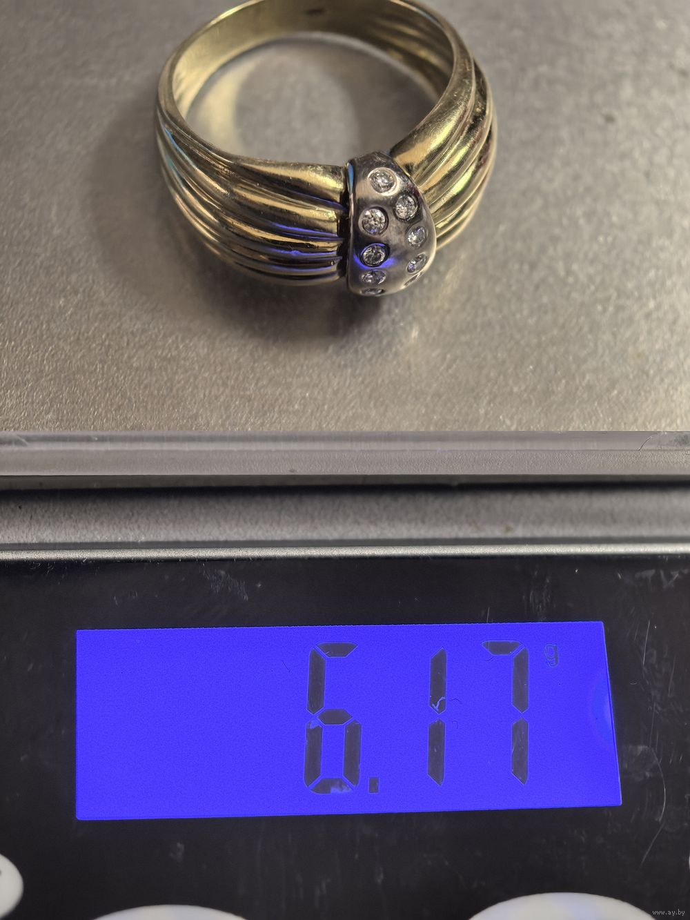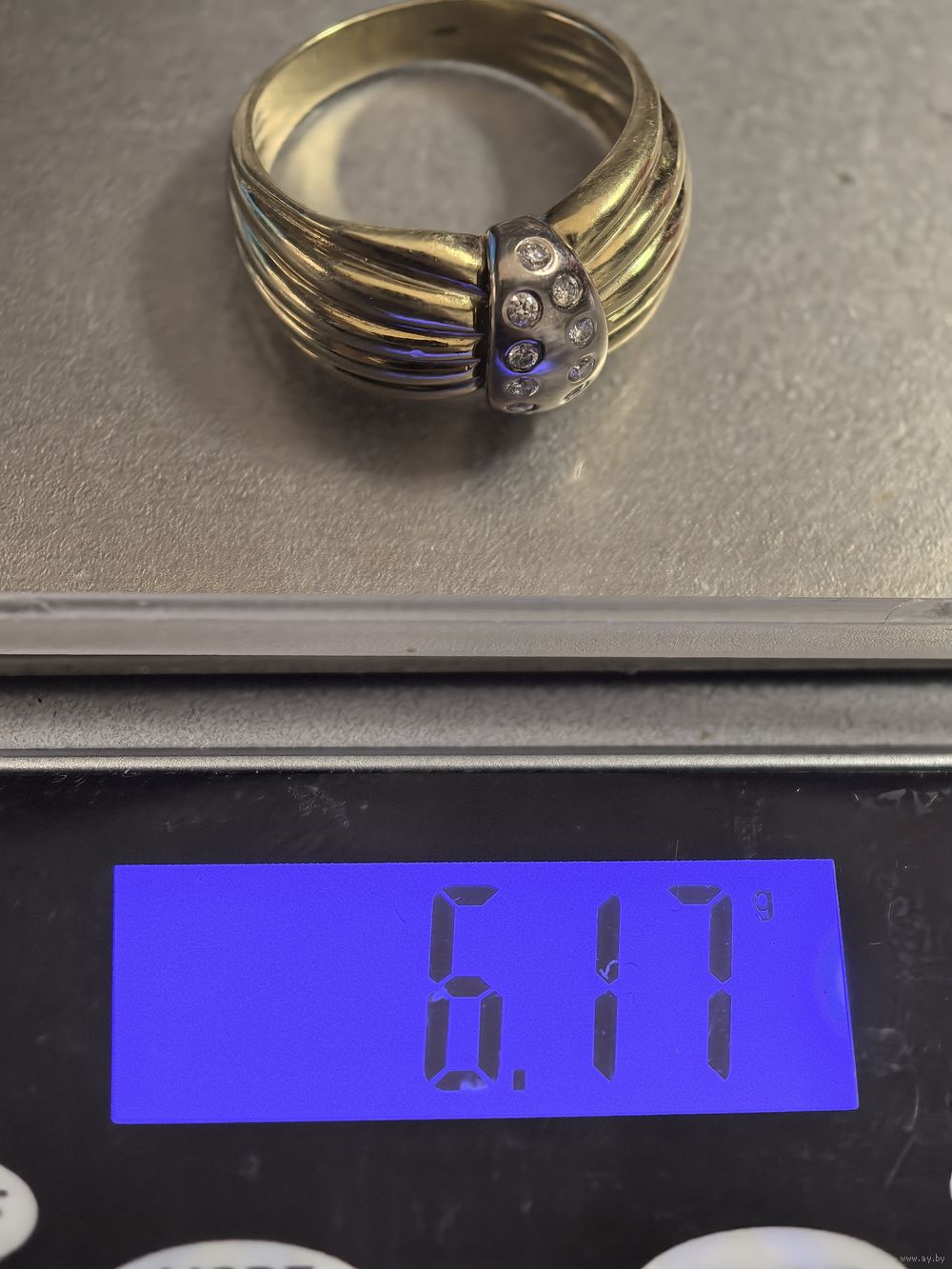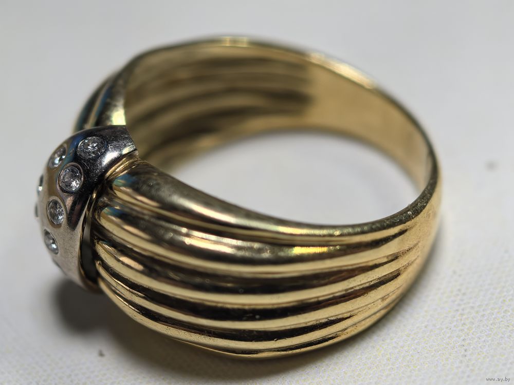 Золотое кольцо. 585 проба. С мелкими бриллиантами. Примерно 1.6 мм. 12 штук.