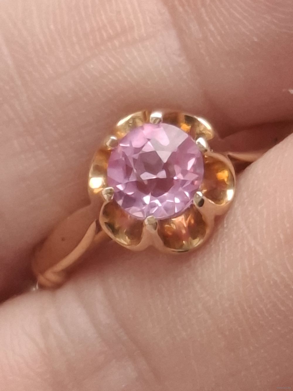 Камень нежно-розовый с огранкой и яркой игрой света.
