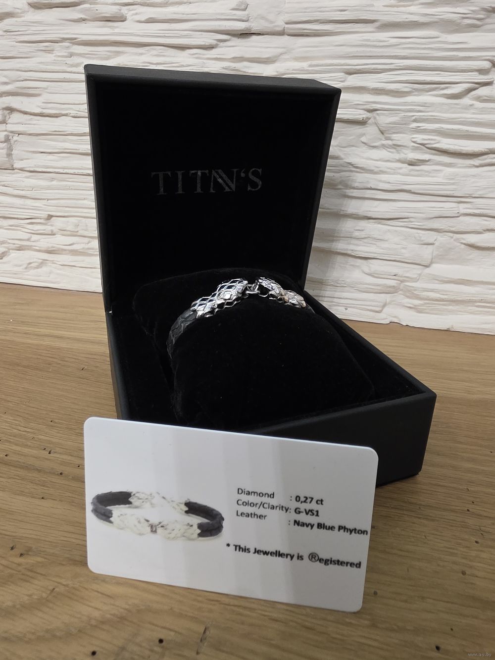 Материалы: Золото 585 пробы, бриллианты, натуральная кожа голубого питона.
