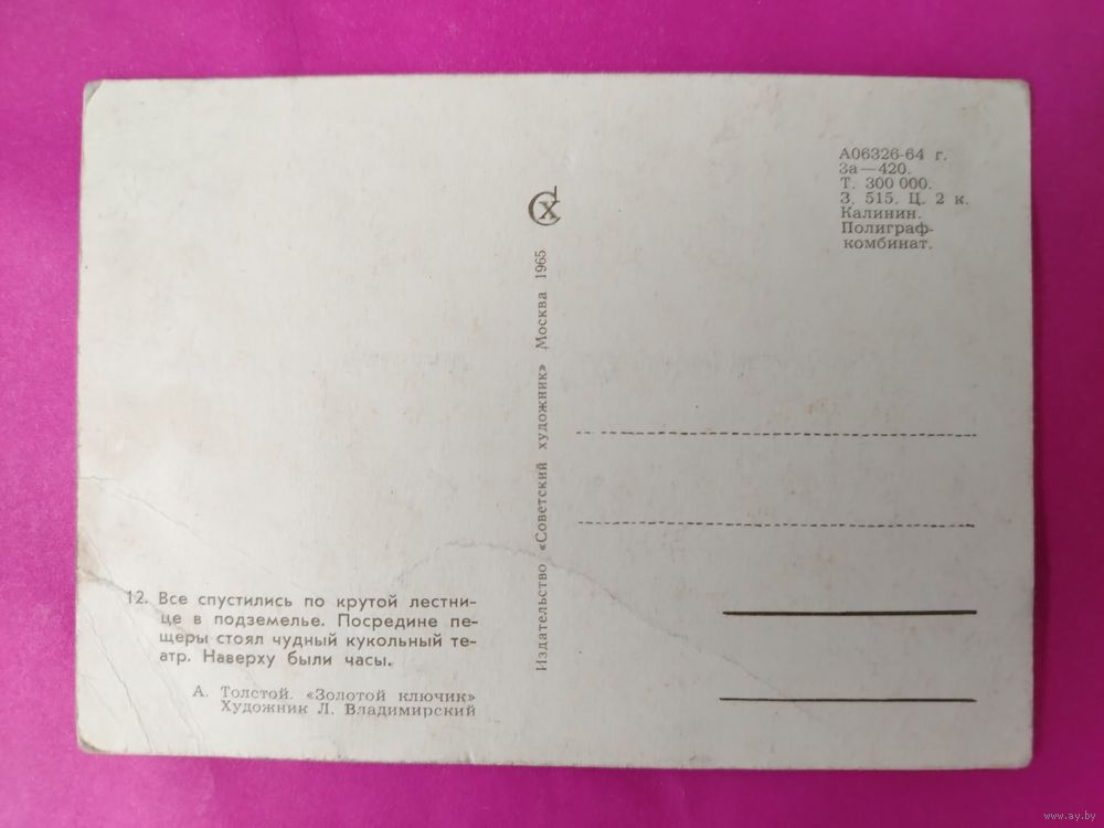 Золотой ключик. Буратино. Чистая. 1965 года. Владимирский. 1061.