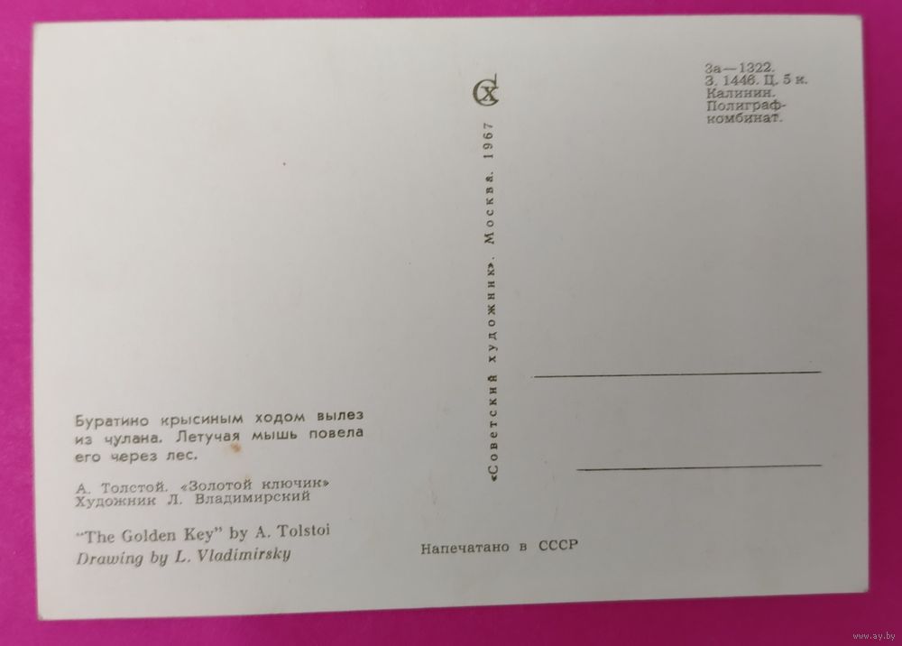 Золотой ключик. Буратино. Чистая. 1967 года. Владимирский. 1124.