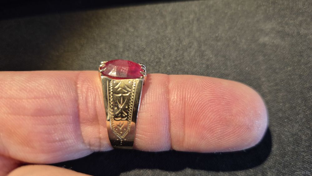 Находка. Период 1908-1927г. Отреставрирован в ювелирной мастерской JStudio. Очень красивый, с узором ручной работы. Камень (не драгоценный, может быть стекло) просто перевернули, он с гранями оказался. Исходное (как и текущее) состояние можно посмотреть на фото. Пробу (56,кокошник вправо) держит. Размер 20-21.