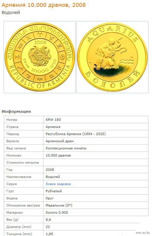 Продам золотую монету из серии знаки зодиака.