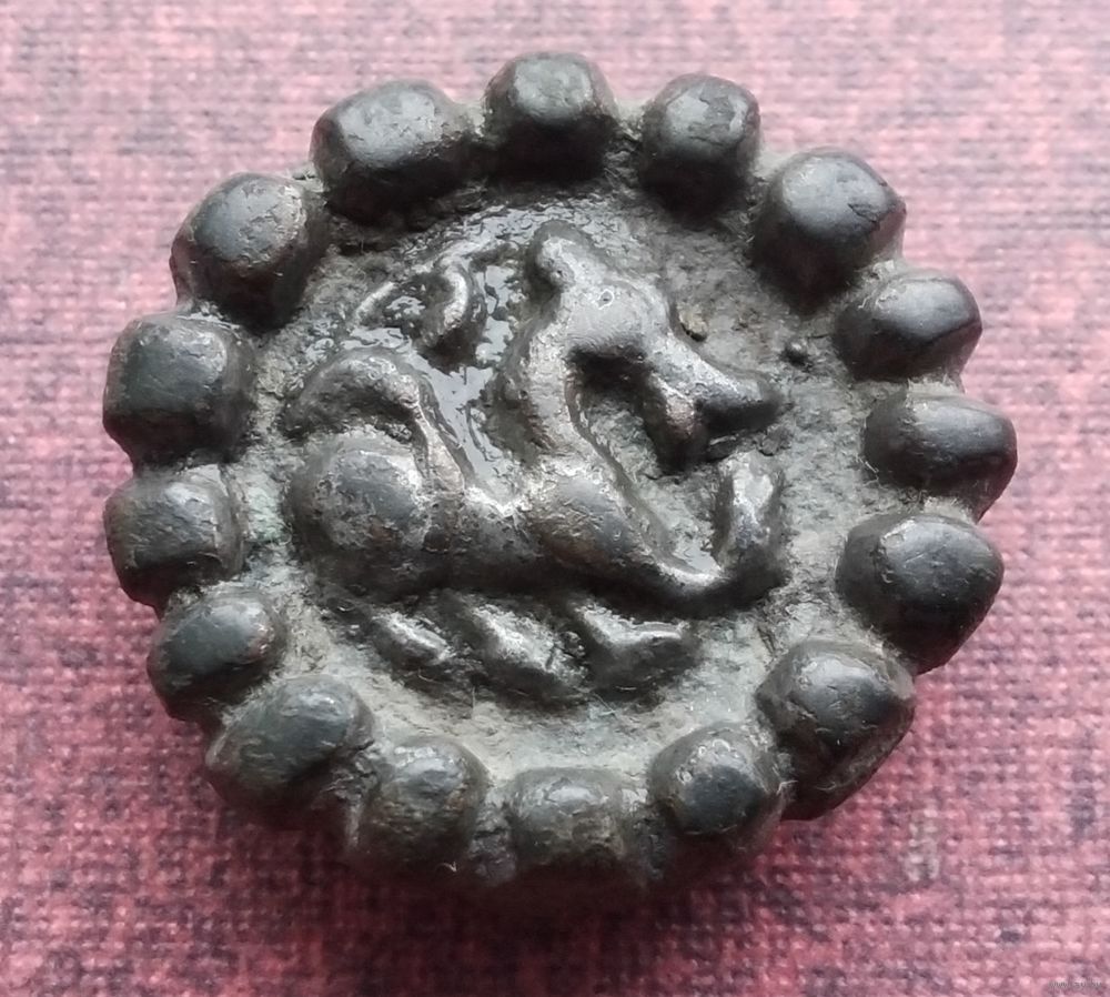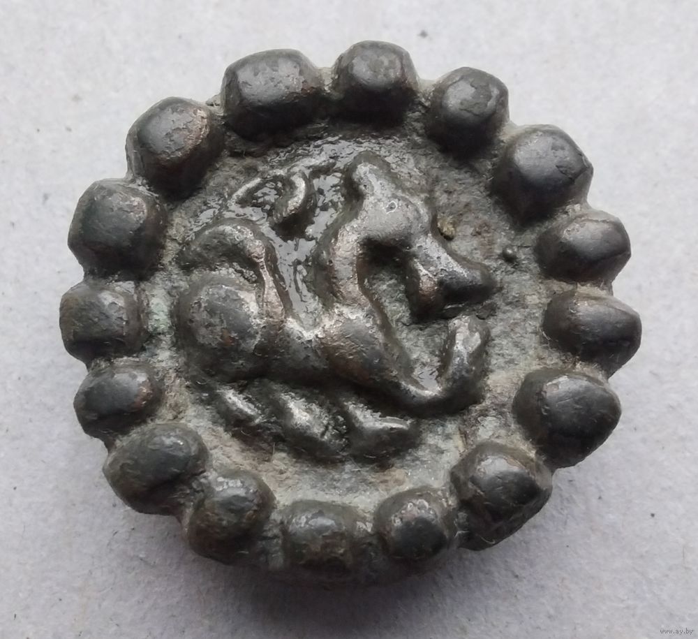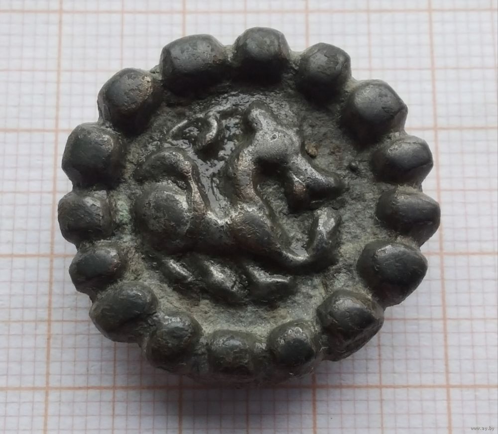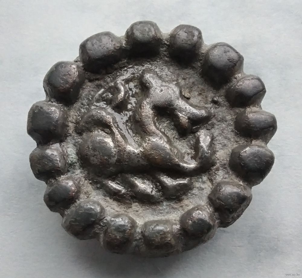 Зооморфная накладка, средневековье, 14-15 века. Медный сплав. Диаметр - 25 мм. Оригинал.Оплата на карту Беларусбанка.