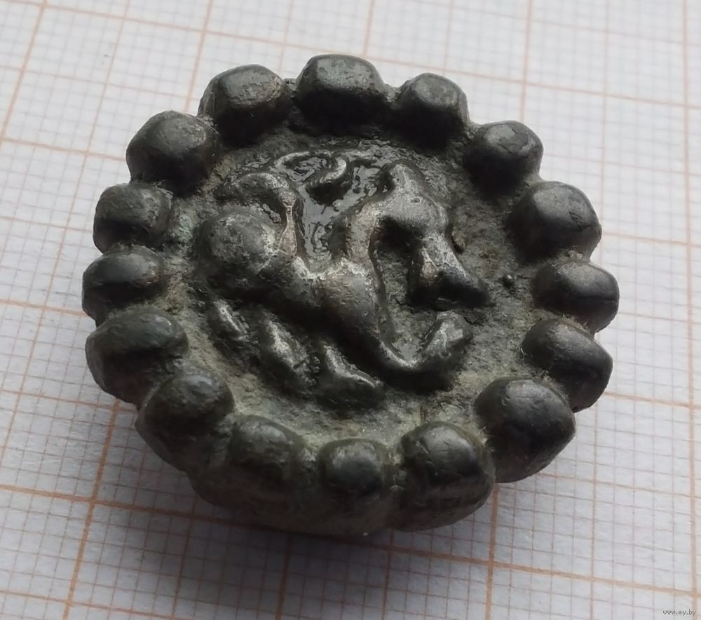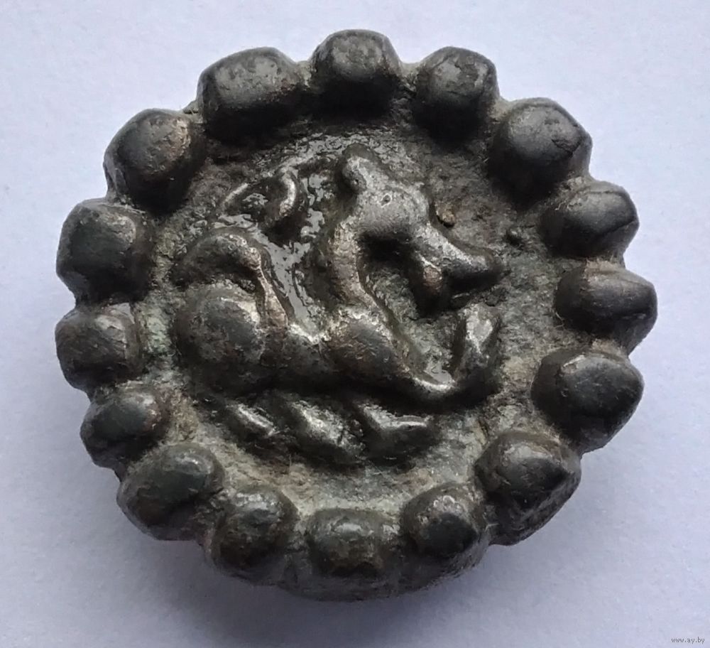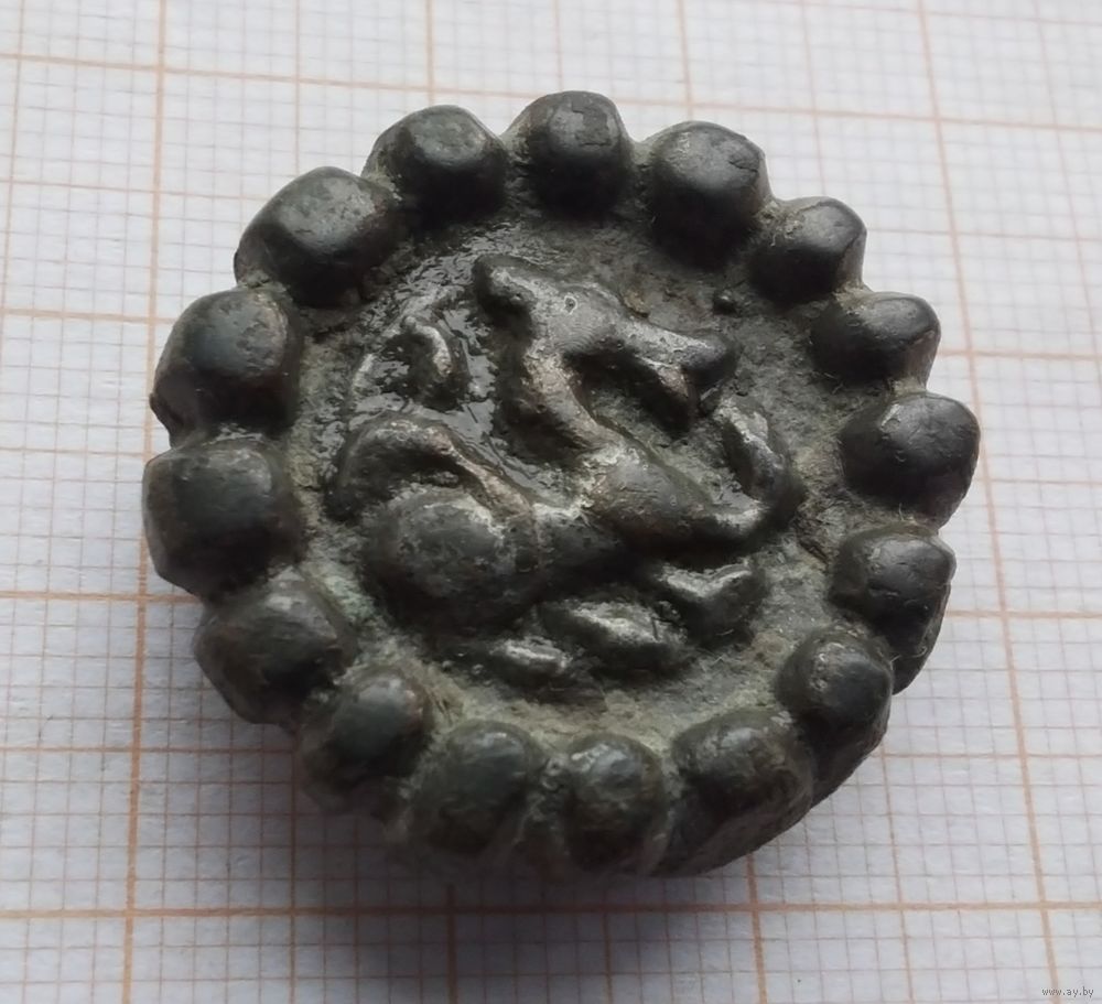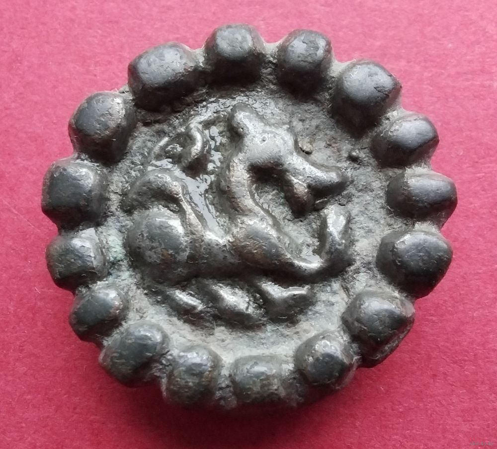 Зооморфная накладка, средневековье, 14-15 века. Медный сплав. Диаметр - 25 мм. Оригинал.Оплата на карту Беларусбанка.