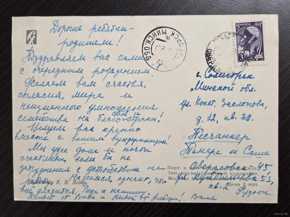Зотов Поздравляю 1961 подписанная открытка СССР
