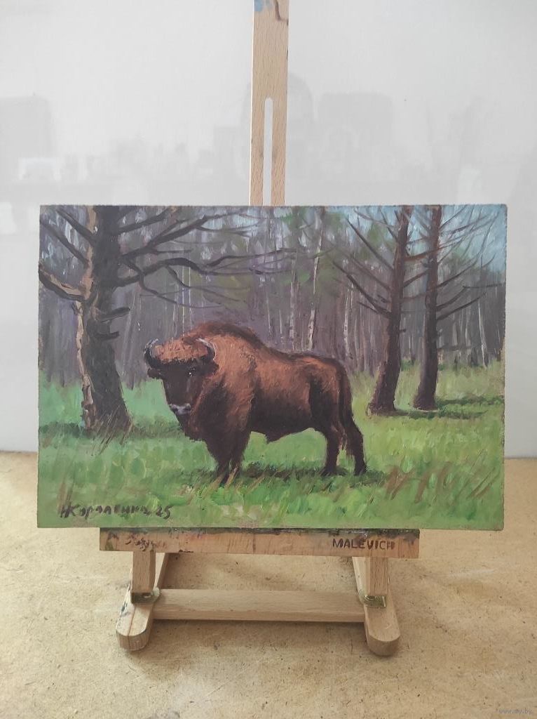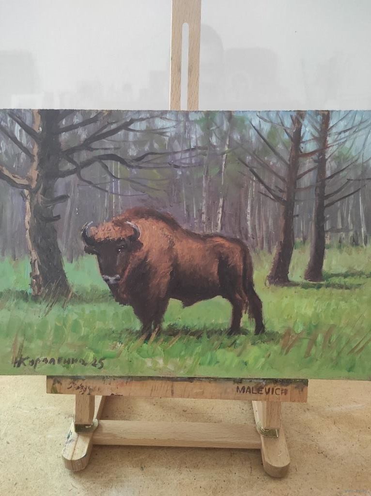 Картина "Зубр 5" двп, масло, размер 21х30см.