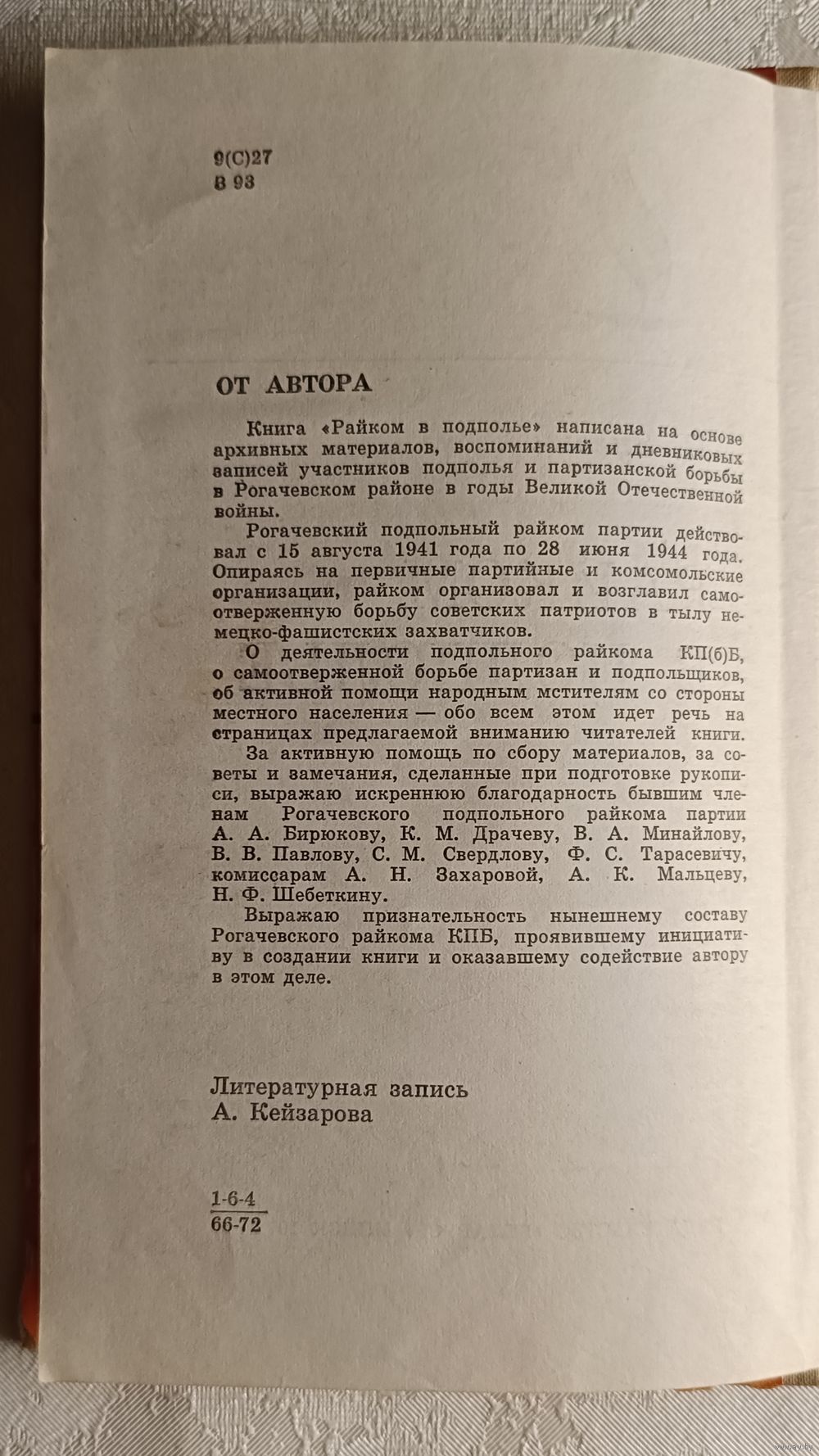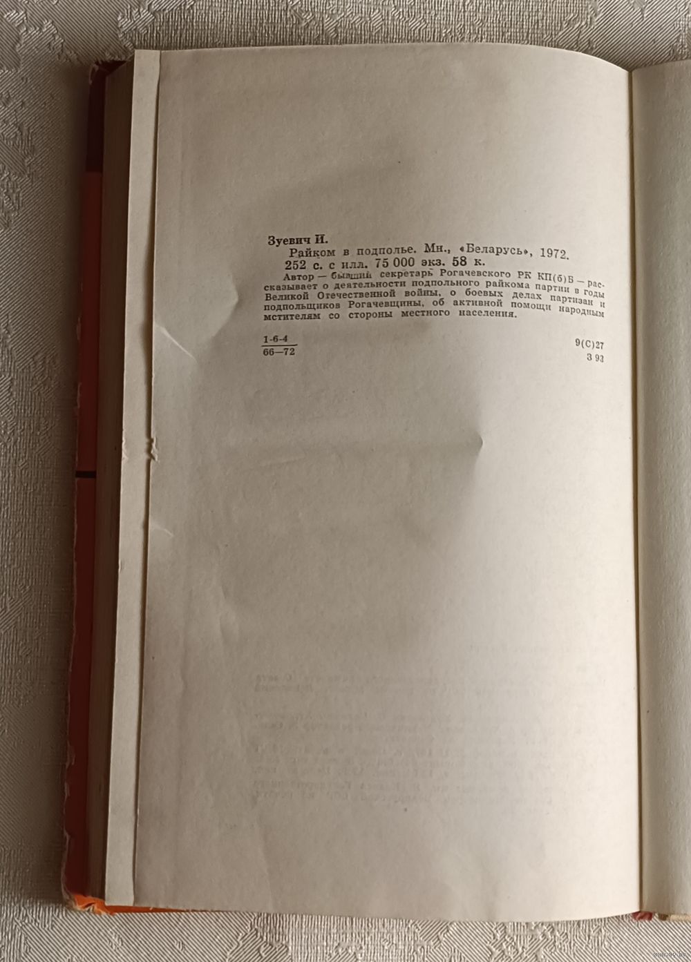 Зуевич Иван.Райком в подполье. Мн.: «Беларусь», 1972, 252 с. с илл., твердый переплет, обычный формат